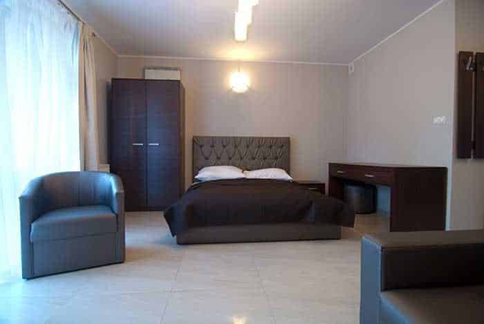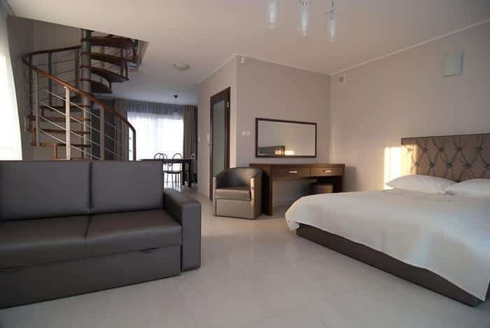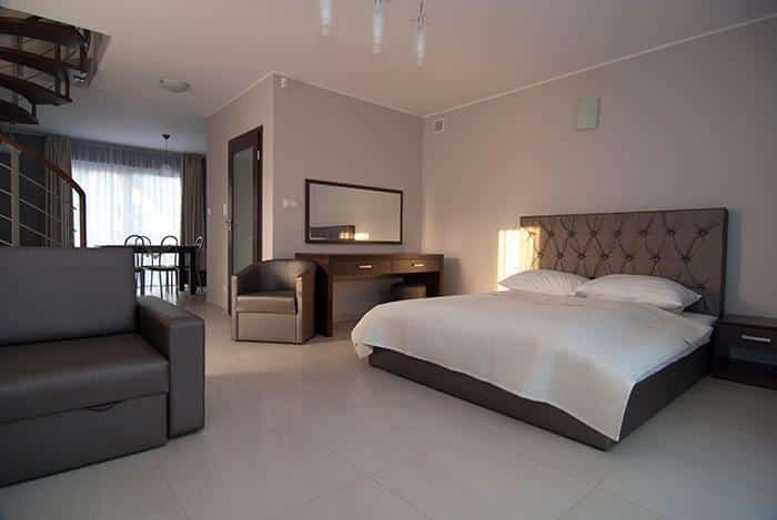 – 5 przestronnych dwupokojowych apartamentów dla 4 osób z możliwością dostawki,