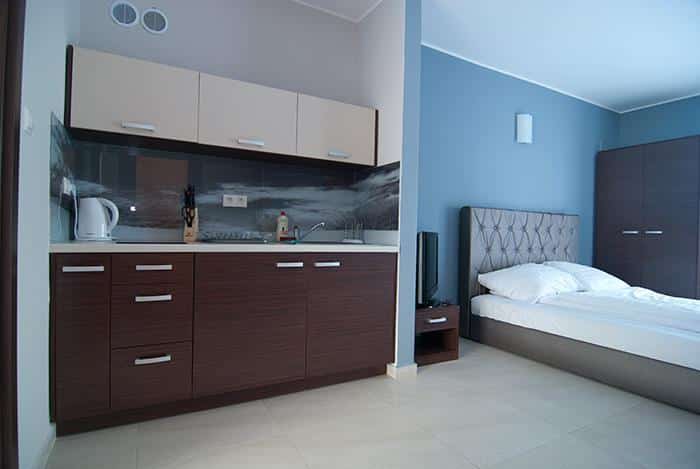 – Każdy apartament składa się z pokoju dziennego połączonego z aneksem kuchennym, łazienki oraz sypialni,
