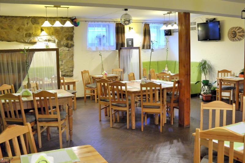 Nasza Villa to również przestrzeń do relaksu na świeżym powietrzu. Duży taras i ogród z miejscem do grillowania to idealne miejsca na spędzenie czasu w gronie najbliższych. Jeśli szukasz kulinarnych wrażeń, zapraszamy do naszej oryginalnej restauracji w podziemiach budynku.
