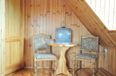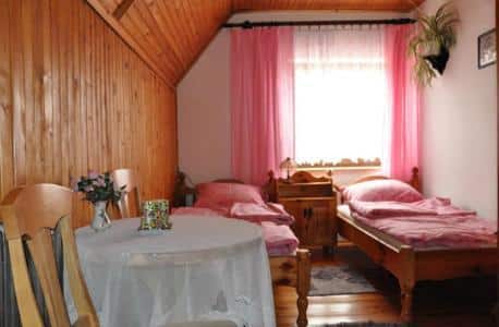 Nasz obiekt oferuje siedem komfortowych pokoi dwuosobowych, każdy z własną łazienką i telewizorem. Większość pokoi, poza tymi na poddaszu, posiada taras, z którego roztacza się zapierający dech w piersiach widok na Mikołajki i jezioro Mikołajskie. Dodatkowo, nasi goście mogą korzystać z przestronnej jadalni z dużym tarasem widokowym oraz parkingu na samochody.