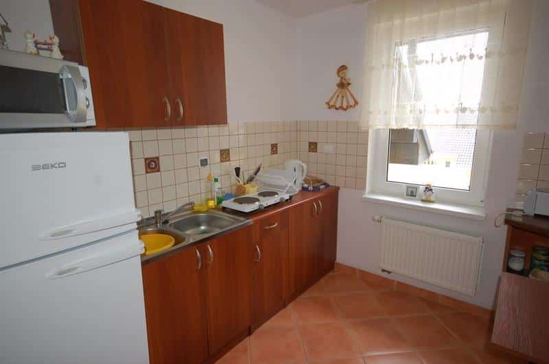 – W pełni wyposażona kuchnia: sztućce, zastawa, naczynia kuchenne, lodówka, mikrofalówka, kuchenka elektryczna