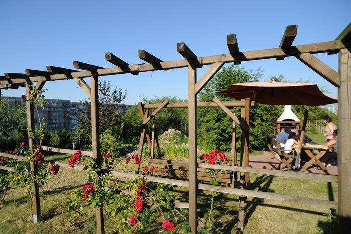 Nasi goście mogą również korzystać z dużego, pięknie zagospodarowanego ogrodu, idealnego do relaksu po pełnym wrażeń dniu. W ogrodzie można odpocząć przy oczku wodnym z szumiącą kaskadą, spotkać się w altankach lub urządzić grilla.