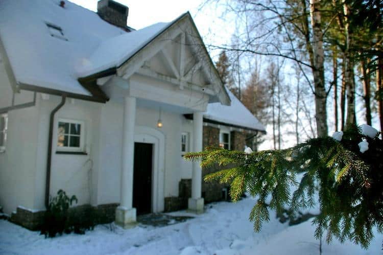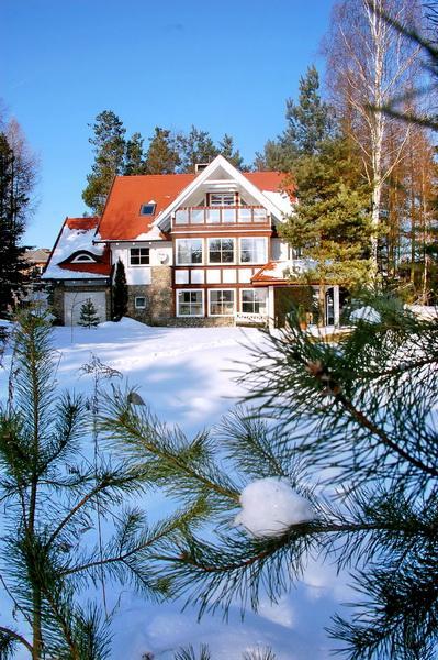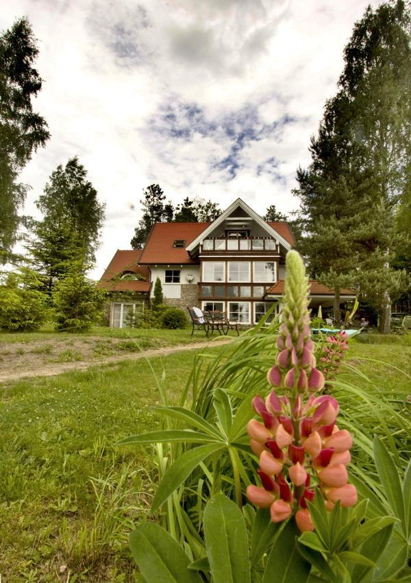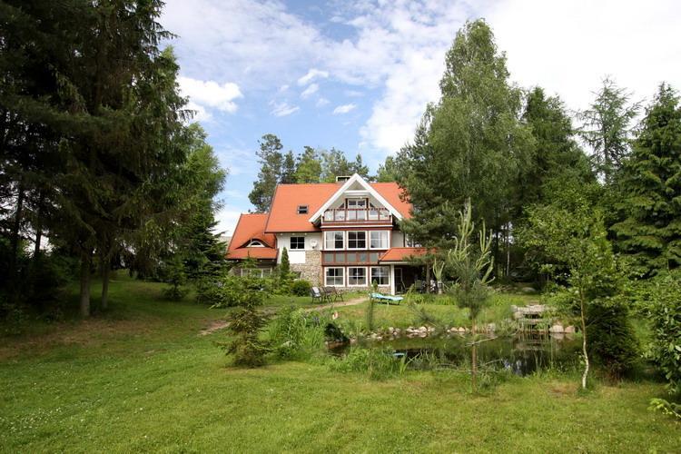 Dom został wybudowany jako urokliwe miejsce do wypoczynku i spotkań rodzinnych. Villa oferuje 21 miejsc noclegowych i posiada przestronny salon, który pomieści około 20-25 osób. Dodatkowo, znajdują się dwie kuchnie, 7 łazienek i 8 sypialni. Dom został wybudowany w 2005 roku i jest ściśle związany z przyrodą i krajobrazem, otoczony pięknym ogrodem. Działka bezpośrednio graniczy z piaszczystą plażą niewielkiego jeziora, gdzie można się kąpać, łowić ryby i raki. Ściany domu są wykonane z kamienia polnego, a meble ogrodowe z drewna sosnowego.