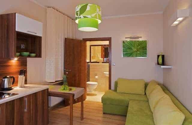 – Aneksy kuchenne wyposażone w lodówki, ceramiczne płyty grzejne, czajniki elektryczne, komplet garnków, naczynia i sztućce,