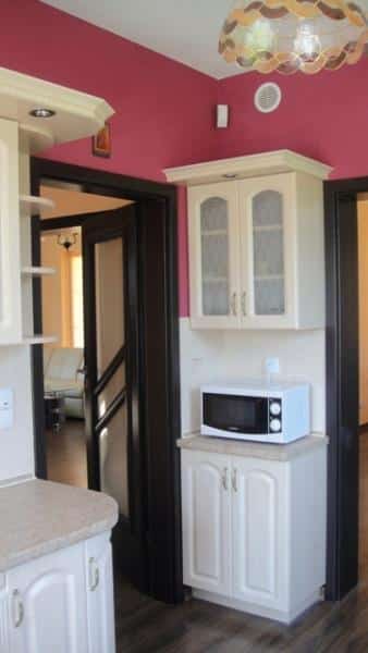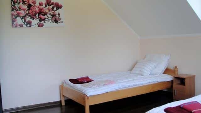 Nasze pokoje urządzone zostały w nowoczesnym stylu, z wykorzystaniem materiałów najwyższej jakości. Łóżka są bardzo wygodne i zapewniają niezbędny komfort dla snu. Na każdym piętrze znajduje się łazienka, a na piętrze rozbudowana jest o łaźnię fińską. Na parterze znajduje się przepięknie wykończona kuchnia z pełnym wyposażeniem, takim jak toster, kuchenka mikrofalowa, opiekacz do kanapek, lodówka.