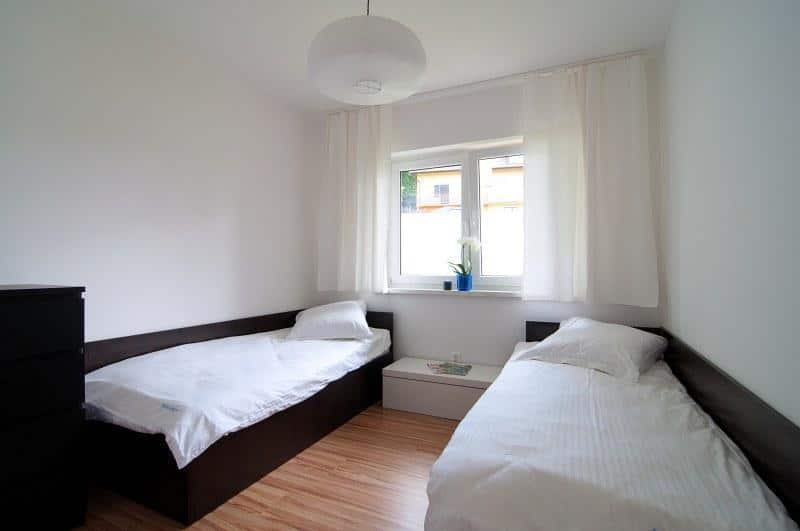– Dwóch sypialni: jedna z dużym łóżkiem małżeńskim, druga z dwoma pojedynczymi łóżkami,