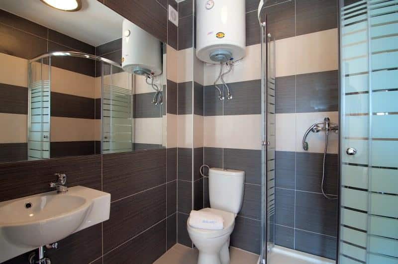 – Łazienki z kabiną prysznicową, toaletą, umywalką i lustrem.