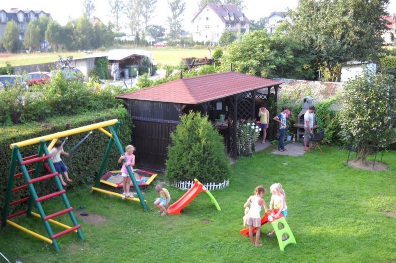 – **Dla dzieci**: plac zabaw z piaskownicą, trampoliną, huśtawką i zjeżdżalniami oraz przestrzeń do gier zespołowych.