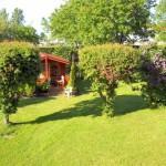 Dostępny jest również drewniany domek letniskowy dla 3 osób, z TV, parawanem i czajnikiem, otoczony zielenią, idealny dla miłośników biwakowania.