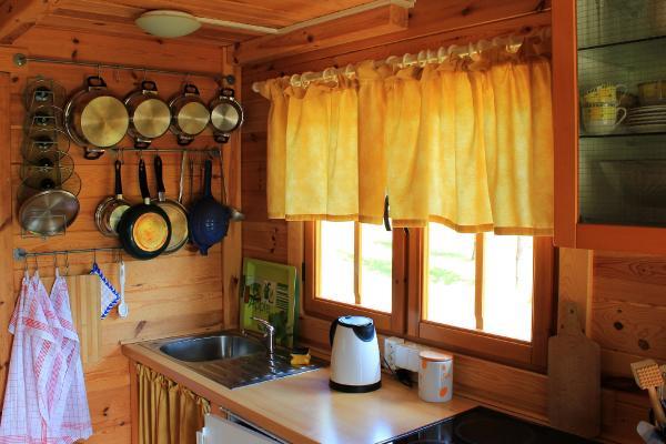 Każdy domek jest w pełni wyposażony i komfortowy, przeznaczony dla 4 osób. W skład wyposażenia wchodzi: