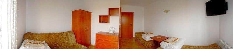Oferujemy pokoje 2-, 3- i 4-osobowe o wysokim standardzie, każdy z własną łazienką wyposażoną w wysoki brodzik, idealny do kąpieli małych dzieci. Pokoje na piętrze posiadają balkony, a te na parterze mają bezpośrednie wyjście na ogród.