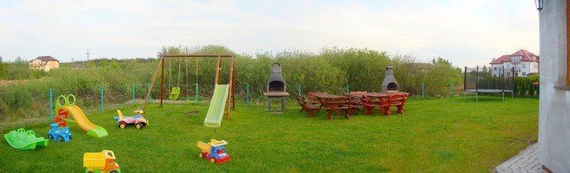 – Ogrodzony plac zabaw z trampoliną, huśtawkami i zjeżdżalnią.