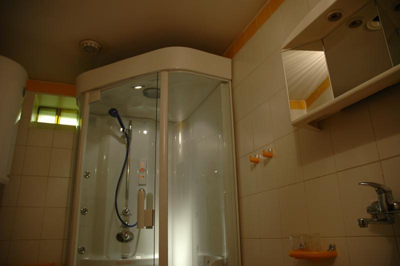 – Wyposażenie: czajnik, kubki, łyżeczki, mały pokój z łóżkiem podwójnym, łazienka z prysznicem, umywalką i WC