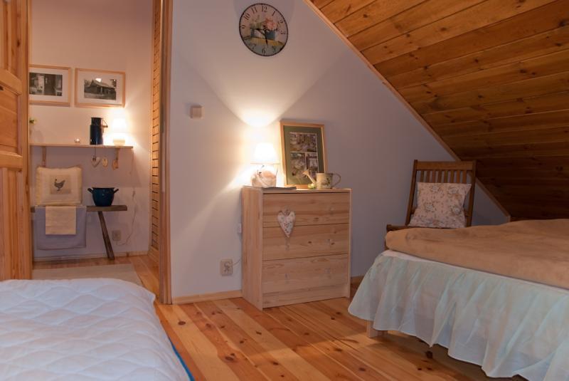 – Sypialnia “Fioletowa” z łóżkiem małżeńskim (160 cm) i możliwością dostawienia łóżeczka turystycznego dla dziecka,