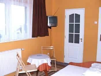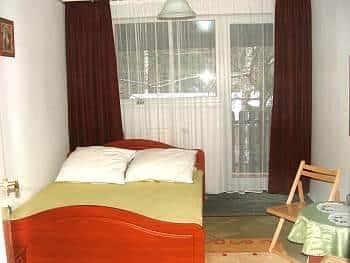 Oferujemy 12 miejsc noclegowych w przytulnych pokojach dwuosobowych, każdy z łazienką, balkonem i telewizorem. Dla rodzin przygotowaliśmy przestronny apartament, składający się z dwóch pokoi i łazienki, mogący pomieścić do 6 osób.