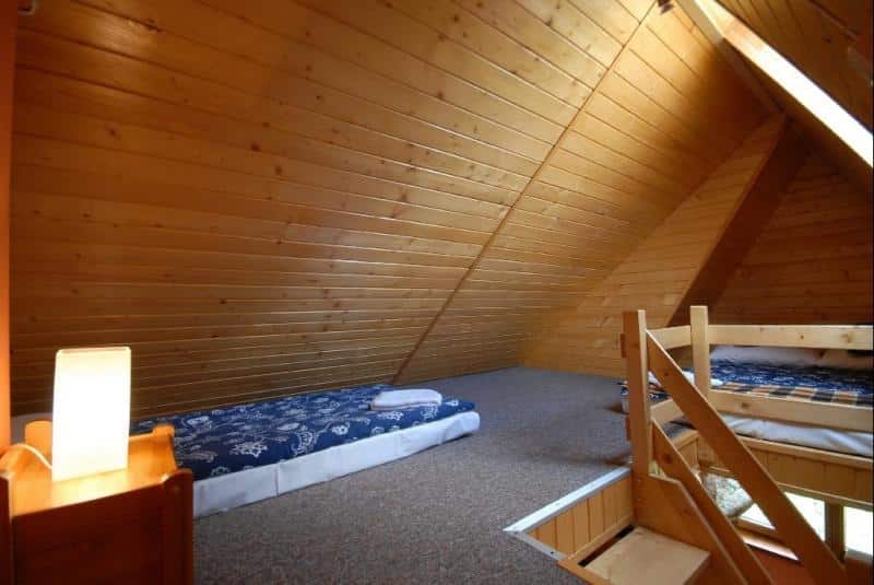 – 2 apartamenty dwupoziomowe z antresolą, łazienką i aneksem kuchennym, które pomieszczą do 5 osób.