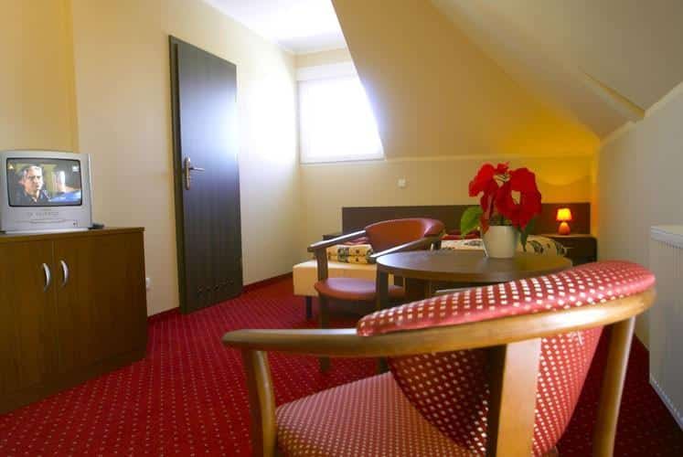 – Komfortowe pokoje z łazienkami i telewizorami,