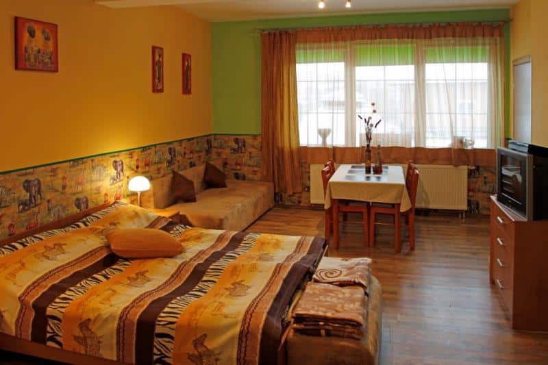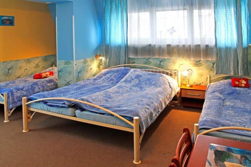 – Pokoje dla 2-3 osób, z dwoma łóżkami, łazienką z prysznicem, telewizorem i internetem.