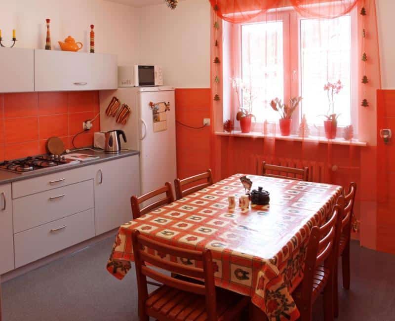 – W pełni wyposażoną kuchnię z lodówką,