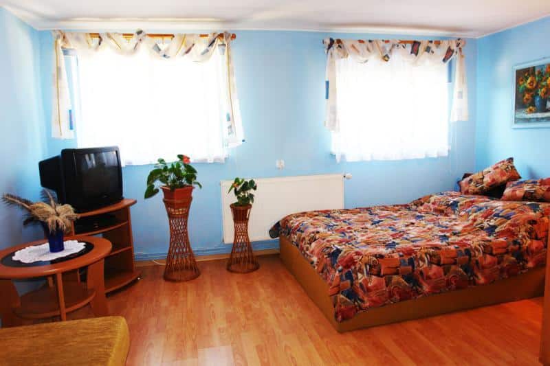 – 6 komfortowych pokoi z łazienkami, wyposażonych w wygodne meble i telewizję satelitarną.