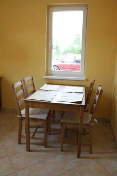 – Aneks kuchenny: wyposażony w lodówkę, czajnik bezprzewodowy, toster oraz zastawę stołową.