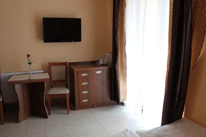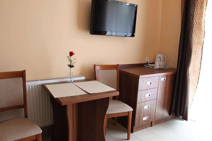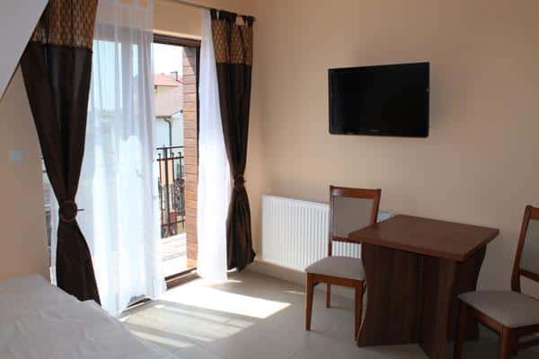 Każdy pokój wyposażony jest w pełny węzeł sanitarny, a większość z nich posiada balkony, co dodatkowo podnosi komfort wypoczynku.