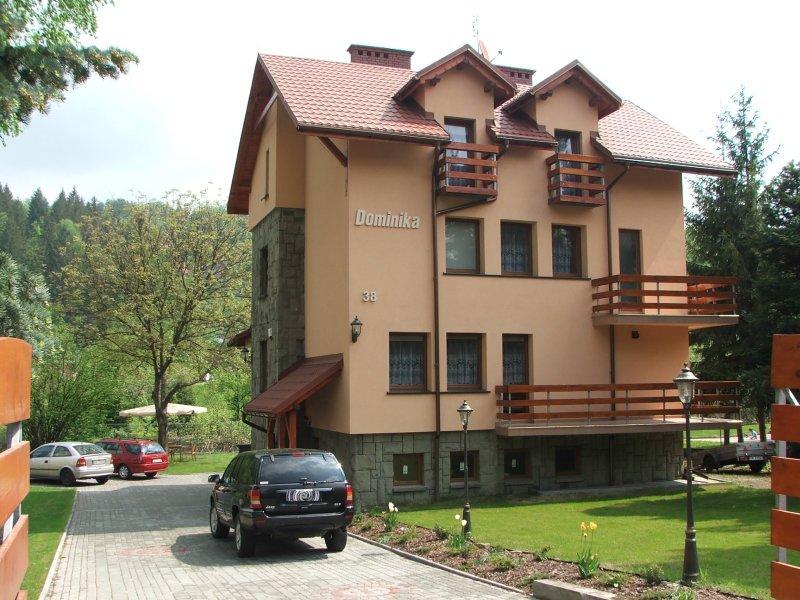 Willa Dominika oferuje przytulne pokoje 2- i 3-osobowe, z łazienkami, balkonami i telewizorami. Dla Państwa wygody, każdy pokój wyposażony jest w aneks kuchenny z pełnym wyposażeniem, w tym kuchenkę, lodówkę i naczynia. Nasz rozległy ogród to prawdziwa oaza spokoju, gdzie można korzystać z miejsca do grillowania, placu zabaw dla dzieci oraz zejścia nad rzekę. Na terenie posesji znajduje się również parking dla naszych gości.