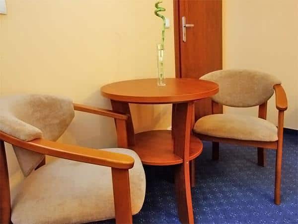 – Okrągły stolik z dwoma fotelikami,