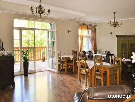 – jadalnię z tarasem, w której serwujemy śniadania i obiadokolacje w postaci bufetu szwedzkiego;