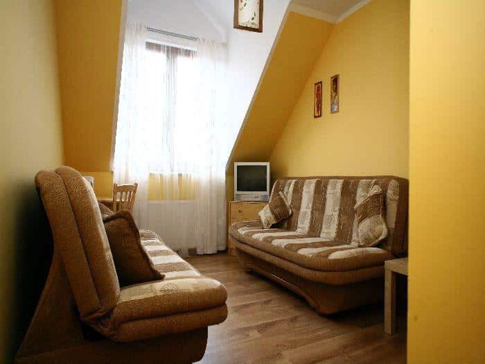 Z południowych okien pokoi rozciąga się piękny widok na Zalew Wiślany i wysoczyznę Elbląską.