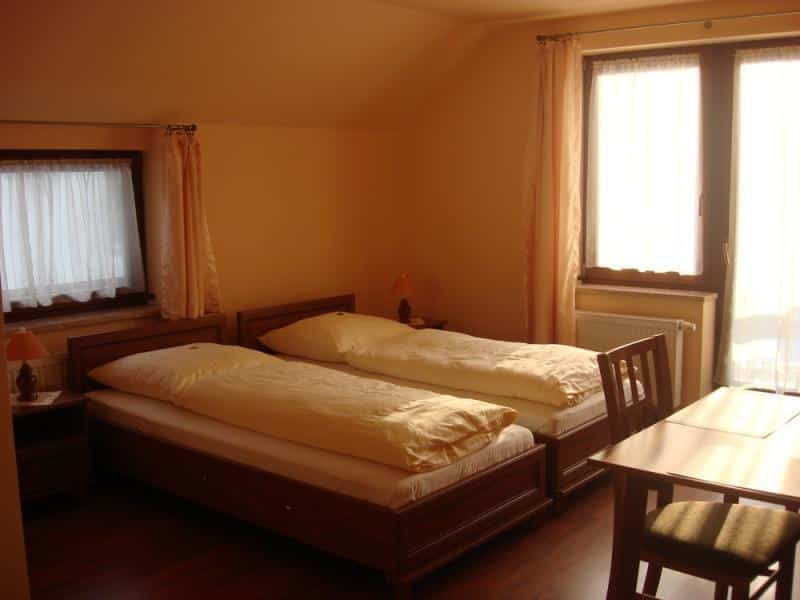 Oferujemy komfortowe noclegi w elegancko urządzonych pokojach dwuosobowych. W niektórych z nich istnieje możliwość dostawki dla dwóch dodatkowych osób dzięki rozkładanej kanapie. Każdy pokój wyposażony jest w prywatną łazienkę, w której znajdą Państwo świeże ręczniki.