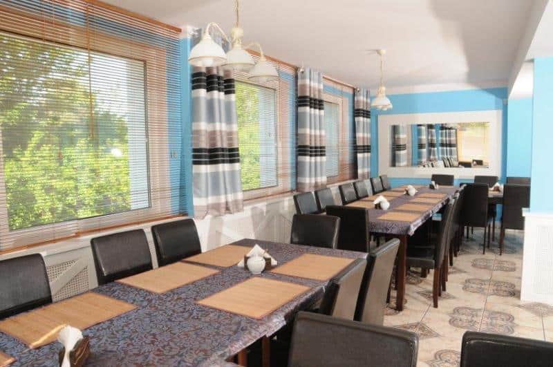 – Jadalnię z salką szkoleniową i mini dyskoteką (profesjonalne nagłośnienie, oświetlenie efektowe, wytwornica dymu oraz sprzęt DJ-ski),