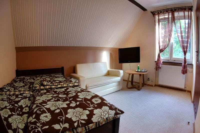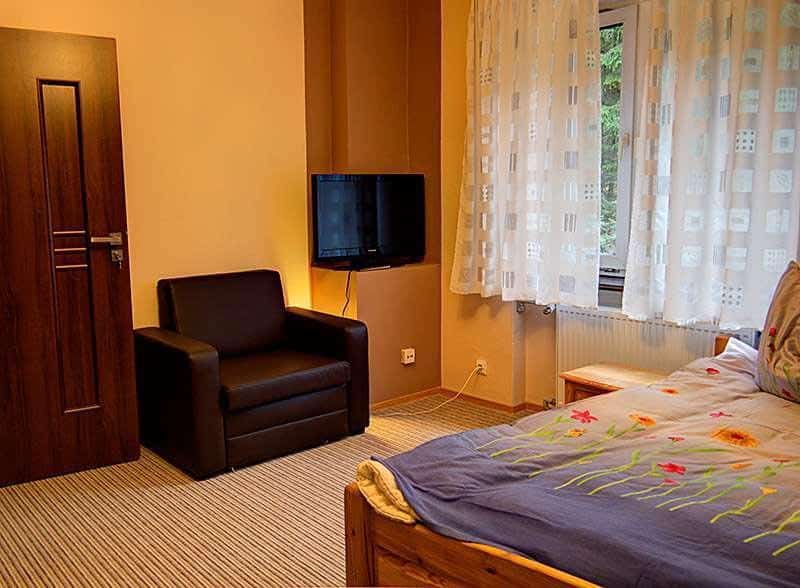 – Pokoje 2, 3 i 4-osobowe z łazienkami, TV i dostępem do Internetu Wi-Fi.