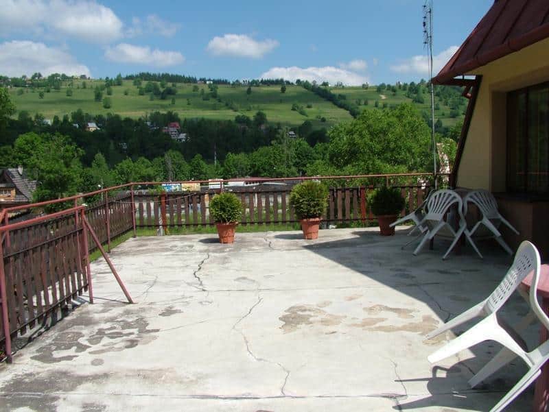Nasz obiekt otacza duży, malowniczy ogród z uroczym szałasem-grillem i kominkiem, który stanowi doskonałe miejsce na letnie wieczory lub deszczowe dni. W pobliżu znajduje się niedroga restauracja, gdzie można posłuchać góralskiej muzyki, a także sklep spożywczy i przystanek autobusowy, oddalone o zaledwie 40 metrów.