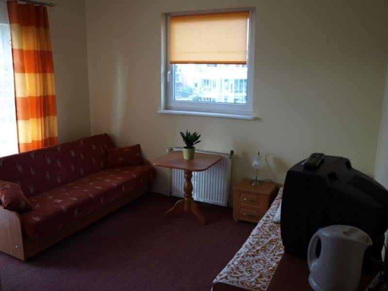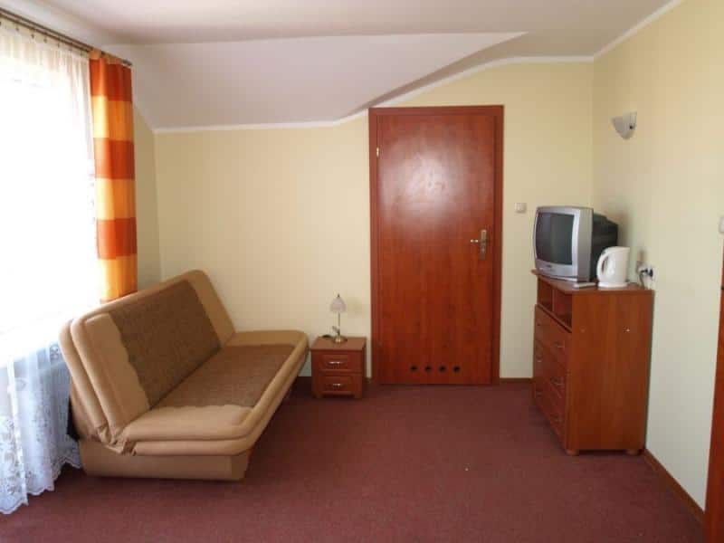 – Wyposażenie pokoi: TV SAT, czajniki, naczynia, sztućce oraz sprzęt plażowy