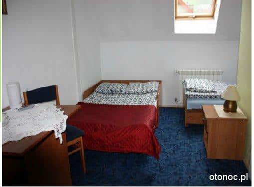 Nasza oferta obejmuje 45 miejsc noclegowych w różnych konfiguracjach: pokoje 1, 2, 3 i 4-osobowe, a także przestronne pokoje rodzinne typu studio. Każdy pokój posiada prywatną łazienkę, co gwarantuje pełen komfort pobytu. Wyposażenie obejmuje radio, czajnik bezprzewodowy, filiżanki oraz sztućce, a większość pokoi wyposażona jest również w telewizor. Na terenie całego obiektu zapewniamy bezpłatny dostęp do Wi-Fi.