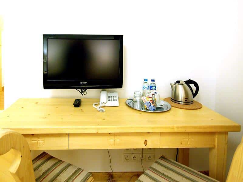 Goście mają do wyboru różnorodne pokoje: dwuosobowe, dwuosobowe z dostawką oraz przestronne studia dwupokojowe, idealne dla rodzin. Sześć pokoi posiada urokliwe, drewniane balkony, które dodają im wyjątkowego charakteru. Szczególnie polecamy studio numer 10 z przepiękną drewnianą konstrukcją i unikalnymi oknami oraz studio numer 12, przypominające przytulne mieszkanie z aneksem jadalnym.