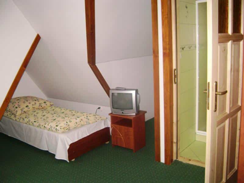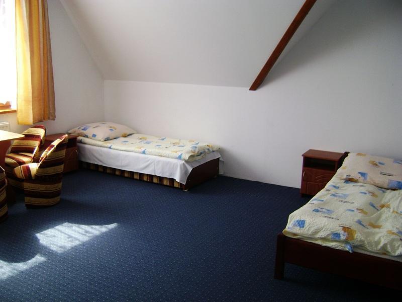 Oferujemy 56 miejsc noclegowych w komfortowych pokojach 1-, 2-, 3- i 4-osobowych. Każdy z pokoi posiada własną łazienkę, telewizor oraz czajnik, co zapewnia wygodę i prywatność. Na miejscu serwujemy pyszne śniadania (BB) oraz opcję śniadań i obiadokolacji (HB), bazując na tradycyjnej kuchni polskiej z regionalnymi akcentami.