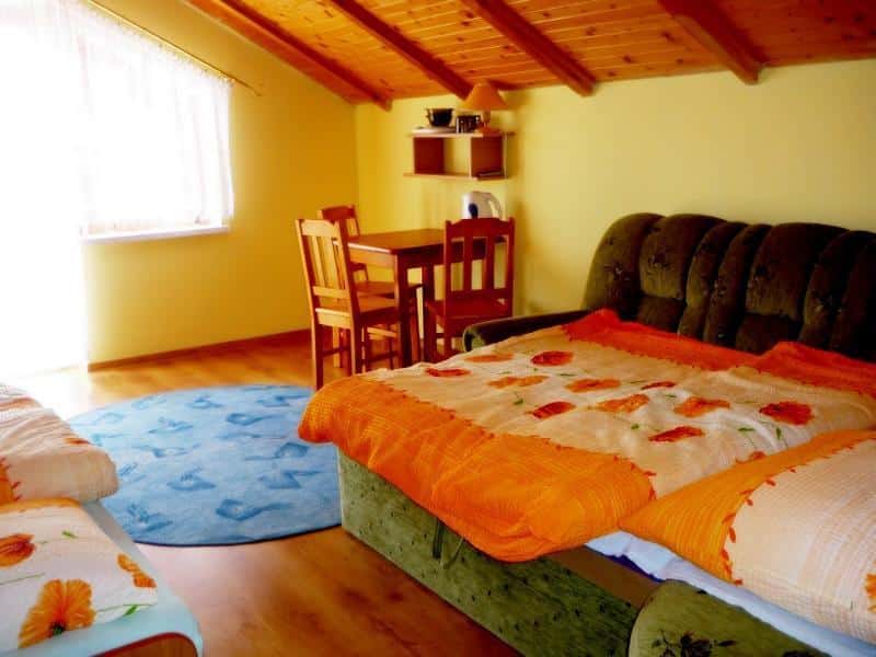 Nasz obiekt oferuje komfortowe noclegi dla 25 osób w pokojach 2-, 3- i 4-osobowych. Każdy pokój wyposażony jest w telewizor, naczynia oraz sprzęt plażowy. W 4-osobowych pokojach znajduje się również prywatna łazienka. Goście mają dostęp do wspólnej kuchni, gdzie mogą przygotowywać posiłki, oraz do lodówki na korytarzu. Dodatkowo oferujemy: