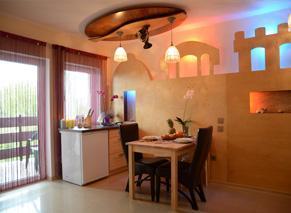 Do dyspozycji gości jest pięć przestronnych apartamentów, każdy o powierzchni ponad 40 m². Każdy apartament wyposażony jest w aneks kuchenny z pełnym wyposażeniem oraz oddzielne sypialnie, co zapewnia komfort i wygodę. Dodatkowo, w każdym apartamencie znajduje się telewizja satelitarna oraz dostęp do bezprzewodowego internetu, co pozwala na pozostanie w kontakcie ze światem.