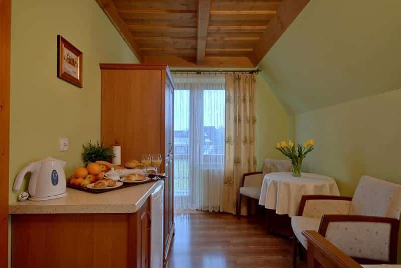 Willa “Mały Dworek” to miejsce, gdzie możesz przygotować pyszne śniadanie lub romantyczną kolację, korzystając z w pełni wyposażonego aneksu kuchennego. Ciepłe wnętrza, przytulna atmosfera i doskonałe wyposażenie sprawiają, że poczujesz się tutaj jak w domu. Zapraszamy do odkrycia niezwykłego komfortu w sercu Tatr!