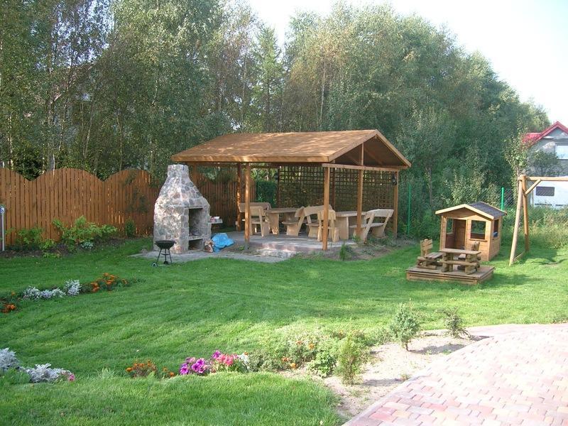 Obiekt otacza piękny, zielony ogród, idealny do odpoczynku. Dla dzieci przygotowaliśmy plac zabaw z huśtawkami, zjeżdżalnią, piaskownicą i drewnianym domkiem. Dorośli mogą cieszyć się chwilą wytchnienia w altanie lub na słonecznych tarasach, delektując się filiżanką kawy. Cała posesja jest ogrodzona, co zapewnia bezpieczeństwo i spokój.