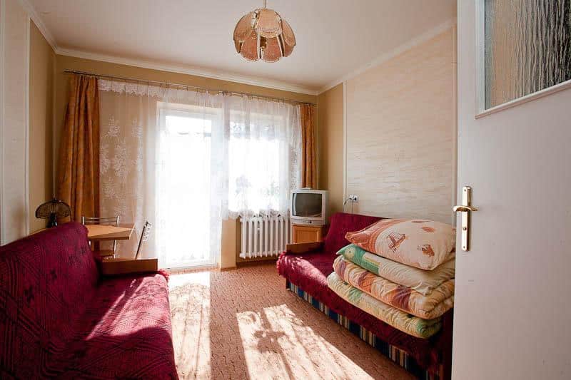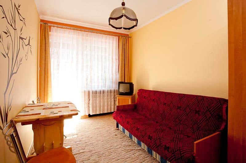 Dodatkowo, każdy pokój posiada telewizor, co pozwala na relaks i rozrywkę po dniu pełnym wrażeń.