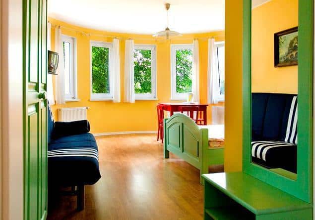 Oferujemy 10 przytulnych pokoi, każdy wyposażony w wygodne łóżko małżeńskie, telewizor, czajnik bezprzewodowy oraz parawan. Dzięki temu możesz cieszyć się prywatnością i wygodą podczas swojego pobytu. Dla osób lubiących gotować, przygotowaliśmy ogólnodostępny aneks kuchenny na pierwszym piętrze, idealny do przyrządzania prostych posiłków.