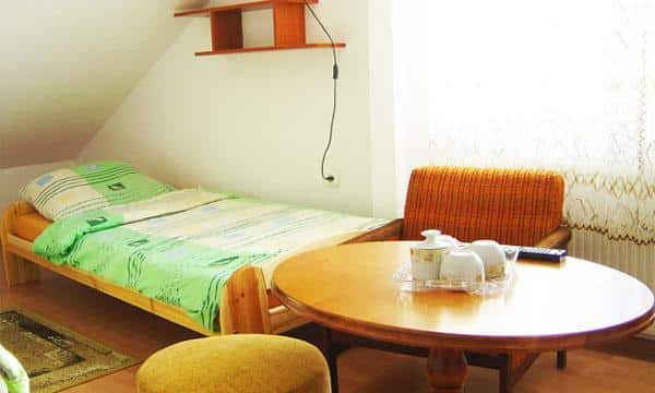 Dla komfortu naszych gości przygotowaliśmy aneks kuchenny z pełnym wyposażeniem, który pozwala na samodzielne przygotowywanie posiłków. Oferujemy również dostęp do bezpłatnego Wi-Fi oraz telewizji cyfrowej, aby zapewnić pełen relaks po dniu pełnym wrażeń. Dodatkowo, przed budynkiem znajduje się parking, co ułatwia podróżującym przybycie własnym środkiem transportu.