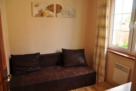 Willa pomieści od 6 do 8 osób i składa się z czterech sypialni, w tym jednej z balkonem, oraz przestronnego pokoju dziennego z tarasem. Na zewnątrz znajduje się mały ogródek oraz miejsca postojowe na trzy do czterech samochodów. Ogrzewanie elektryczno-kominkowe zapewnia ciepło i przytulność w chłodniejsze dni.