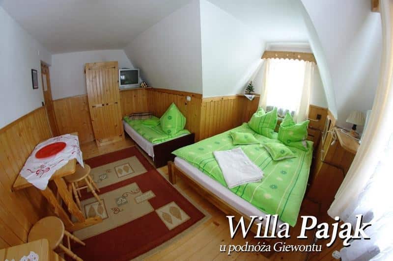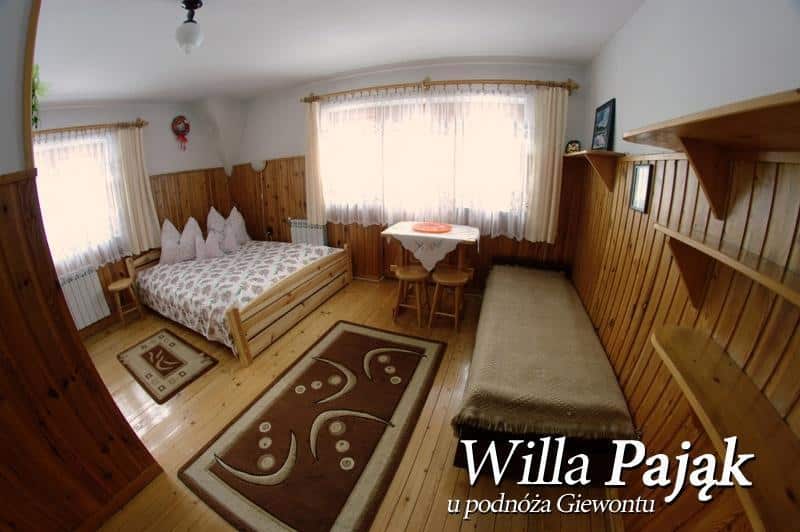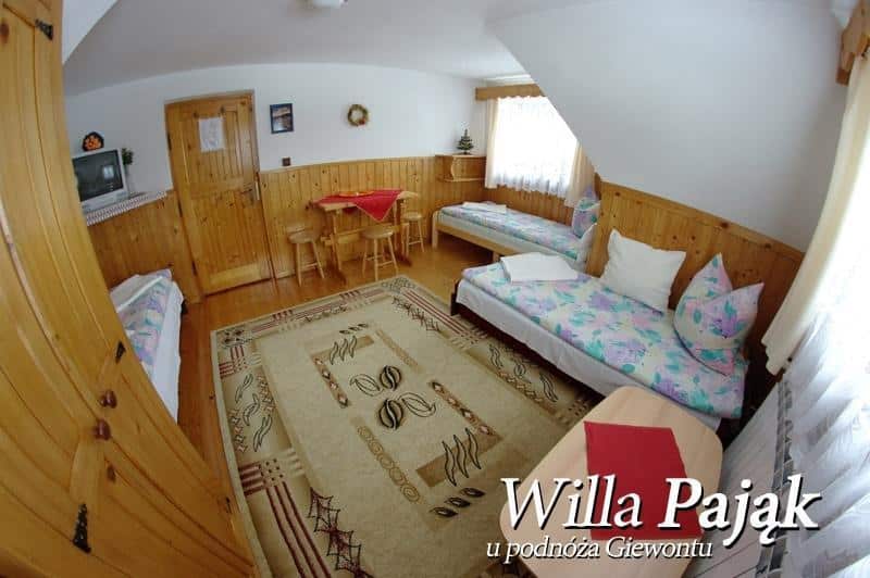 Willa Pająk wyróżnia się wyjątkowym położeniem, które zapewnia spokojny wypoczynek z dala od miejskiego zgiełku, a jednocześnie umożliwia szybki dostęp do centrum Zakopanego, szlaków turystycznych oraz wyciągów narciarskich. Nasz obiekt jest utrzymany w tradycyjnym zakopiańskim stylu, co pozwala w pełni poczuć atmosferę regionu.