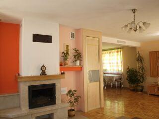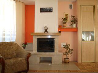 – Salon z kominkiem