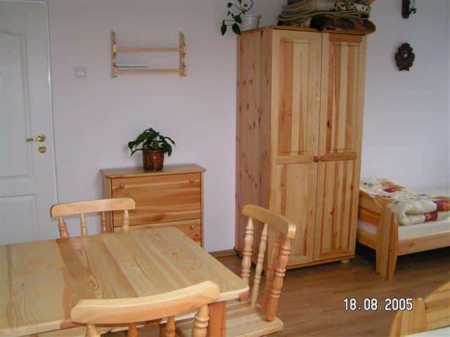 Wszystkie pokoje wyposażone są w telewizor, radio, czajnik i naczynia, a pokój czteroosobowy i apartament dodatkowo w tuner satelitarny. W apartamencie może wygodnie nocować do pięciu osób, a salon z piecykiem grzewczym i telewizją satelitarną zapewnia przytulną atmosferę.