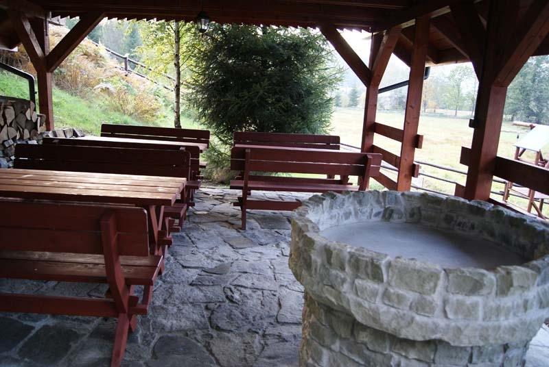 – oświetlona wiata grillowa z paleniskiem i stołami biesiadnymi.